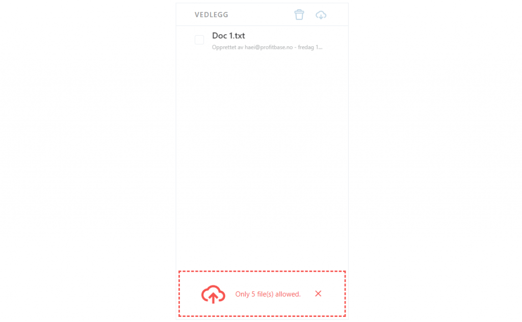 - Max number of files to upload pr batch – allows limiting the number of files that a user can upload in a single operation. Context menu option on a file entry in the component.